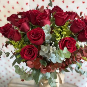 Dos docenas de rosas rojas intensas, un regalo espectacular para declarar amor o celebrar un momento especial.